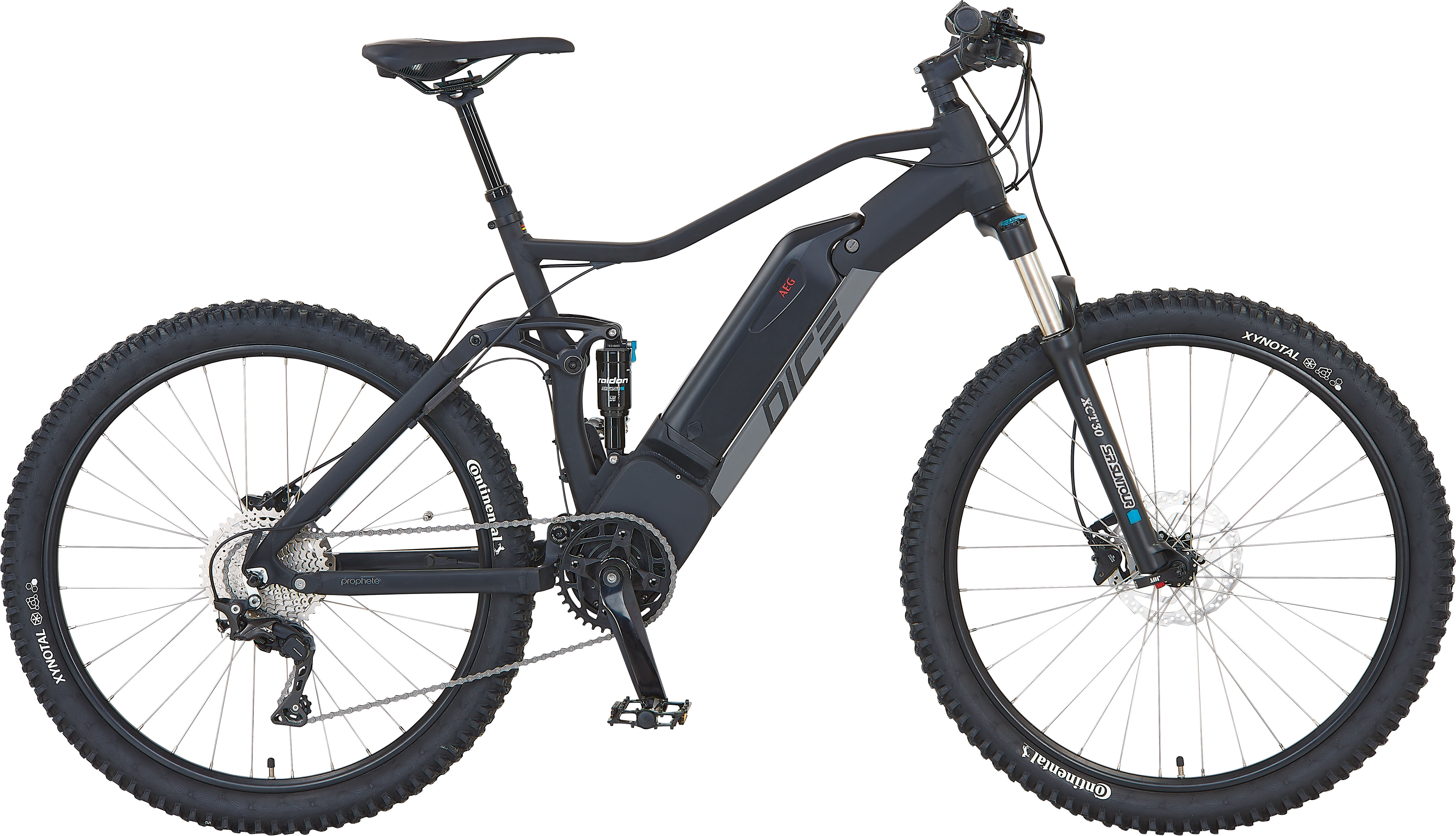 Prophete Dice 4.8 Full Suspension E-MTB 27,5"Mittelmotor 250W, 180 km Reichweite, Shimano Deore XT 10-Gang, Hydraulische Scheibenbremsen, Suntour Luft-Federgabel - Schwarz