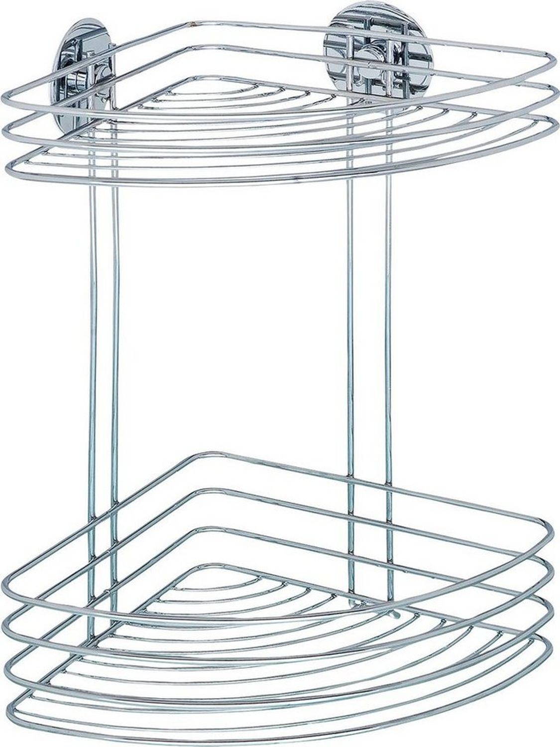 Das WENKO Dusch Eckregal mit 2 Ablagen bietet eine praktische und stilvolle Lösung für Ihr Badezimmer. Dank des innovativen Turbo-Loc®-Wandbefestigungssystems können Sie das Regal mühelos ohne Schrauben, Bohren oder Dübel anbringen. Mit einer Belastbarkeit von bis zu 40 kg und einem ansprechenden Design aus verchromtem Stahl ist es sowohl funktional als auch langlebig. **Highlights** - Turbo-Loc®-Wandbefestigungssystem für einfache Montage - Keine Schrauben, Bohren oder Dübel erforderlich - Klebepad mit extrem festem Halt auf glatten Oberflächen - Rückstandslos wieder entfernbar - Belastbar bis zu 40 kg **Produkteigenschaften** - 2 Ablagekörbe für viel Stauraum - Material: verchromter Stahl - Maße (B x H x T): 26,5 x 33 x 20 cm - Solide Qualität für langlebige Nutzung - Ideale Stauraumnutzung von Raumecken