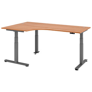 ,,Falls Ihr Tisch in einer Ecke seinen Platz finden soll, bietet sich der Hammerbacher Ergonomic Aktiv XDSM82 an. Die Spanplatte in Nussbaumoptik misst 200 x 120 cm und verfügt über eine Sitzaussparung. Sie können den Tisch bis zu 80 kg dynamisch bzw. 120 kg statisch belasten, er hält also einiges aus. Er bietet Höhen von niedrigen 62 bis hohen 127 cm und speichert bis zu vier Einstellungen. ..."