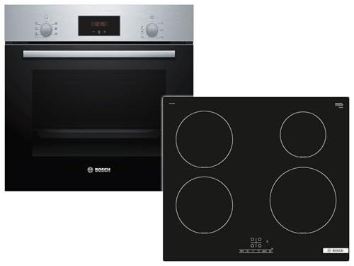 Bosch Einbau-Backofen-Set HBF133BR0 + Induktionskochfeld PUE61RBB6E60 cm, Edelstahl, 66 l Garraum, 5 Beheizungsarten, Touch Select Steuerung