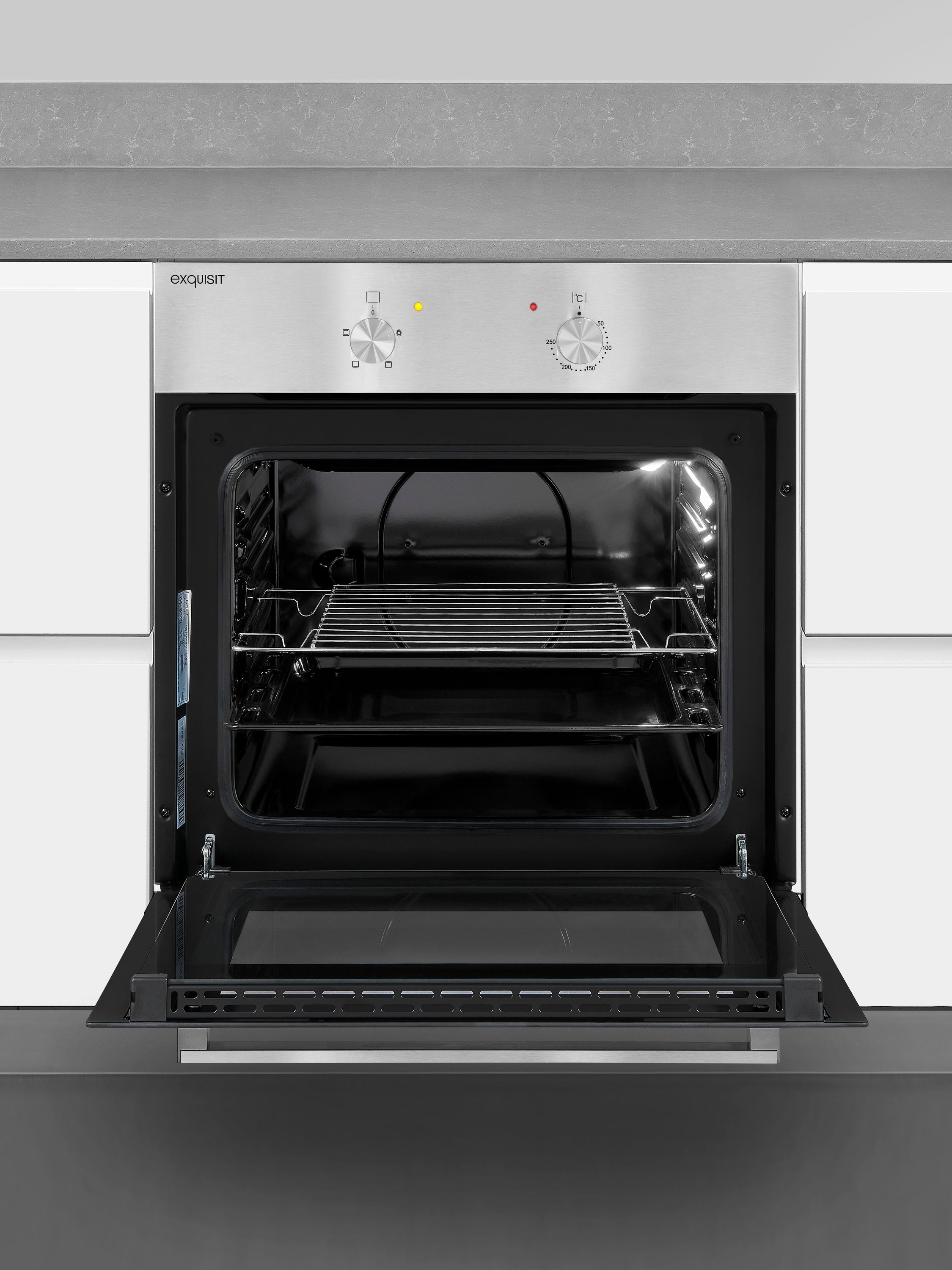 Der Exquisit Einbauherd bietet eine Vielzahl von Vorteilen für den Nutzer. Er wird gut und sicher verpackt geliefert, was für einen unbeschädigten Transport sorgt. Das wertige Aussehen mit VA-Front und Aluminiumknöpfen verleiht der Küche ein elegantes Erscheinungsbild. Mit einer großzügigen Kabellänge ist die Installation flexibel und einfach durchführbar. Zudem überzeugt das Gerät mit einem guten Backergebnis, sodass köstliche Speisen problemlos zubereitet werden können.