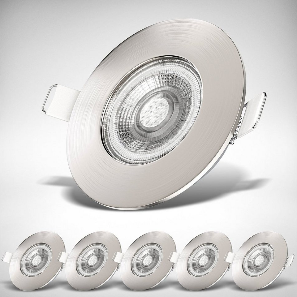 | Name | B.K.Licht LED Einbaustrahler LED Bad Einbauleuchten 6er Set Ultra-Flach 25mm - BKL1278, LED fest integriert, Warmweiß, Ø90mm Matt-Nickel 6 x 5W 6x 460 Lumen 3.000K IP44 Badspots Deckenspots |