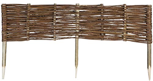 1 Stück Beetbegrenzung aus Weide in 16 Größen | Länge: 100 cm Höhe: 20 cm | Weidenzaun Steckzaun Rasenkante Beeteinfassung Holz imprägniert mit Buchepflöcken für leichtes Einsetzen Palisade