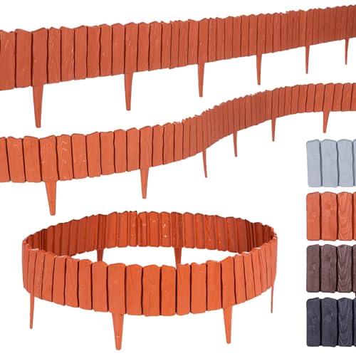 BooGardi Rasenkante Kunststoff Holzoptik 4 Farben 57cm x 12,5cm 5er/10er/20er Set · Terrakotta 10er Set · Flexible Beeteinfassung · Beetumrandung Garten · Mähkante Raseneinfassung