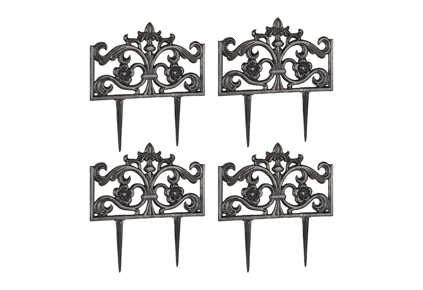 relaxdays Beetbegrenzung 4 x Beetzaun Gusseisen bronzenostalgisches Design, robustes Gusseisen, Dekozaun mit Erdankern, dekorativer Blickfang