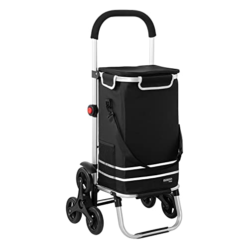 Der Trolley bietet eine praktische Lösung für den Einkauf, indem er über viel Stauraum verfügt und mit einer integrierten Kühltasche ausgestattet ist. Dies ermöglicht es, Lebensmittel frisch zu halten und bequem nach Hause zu transportieren. Die gute Treppensteigfunktion erleichtert das Überwinden von Hindernissen wie Stufen, während die einfache Handhabung den Transport zum Kinderspiel macht.