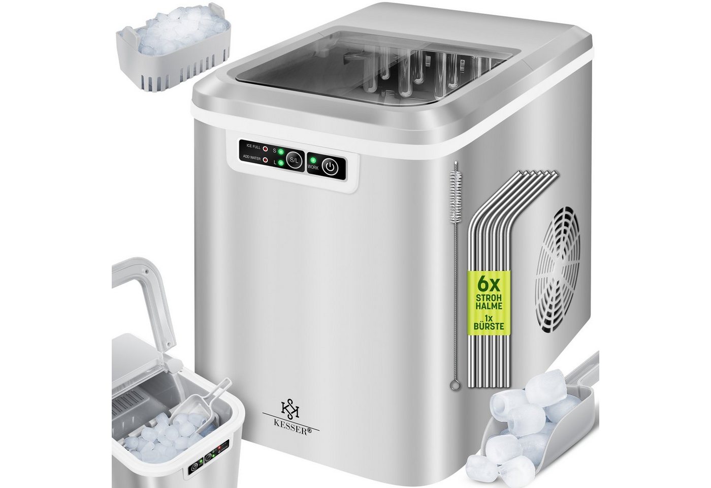 KESSER EiswürfelmaschineEiswürfelbereiter Edelstahl Ice Maker - 12-15kg/24h - 2 Eiswürfel-Größen