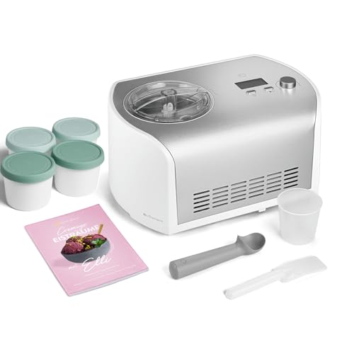 Die Springlane Kitchen Eismaschine Elli 1 ist eine kompakte und benutzerfreundliche Maschine, die mit einem integrierten Kompressor ausgestattet ist, sodass kein Vorfrieren des Behälters notwendig ist. Sie produziert in kurzer Zeit cremiges Eis, eignet sich jedoch eher für kleinere Portionen. Der Geräuschpegel ist moderat und das Eis benötigt nach der Zubereitung eine zusätzliche Kühlung für eine festere Konsistenz.