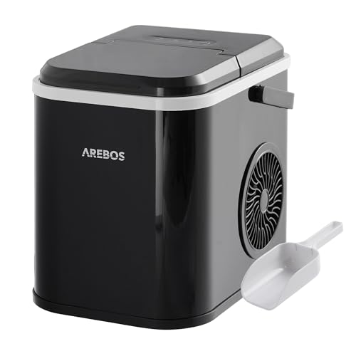 Arebos Eiswürfelmaschine | Ice Cube Maker | 12 kg / 24 h | 10-15 Minuten Produktionszeit | 1,1 Liter Wassertank | Eiswürfelbereiter | Leise | Selbstreinigungsfunktion | Schwarz