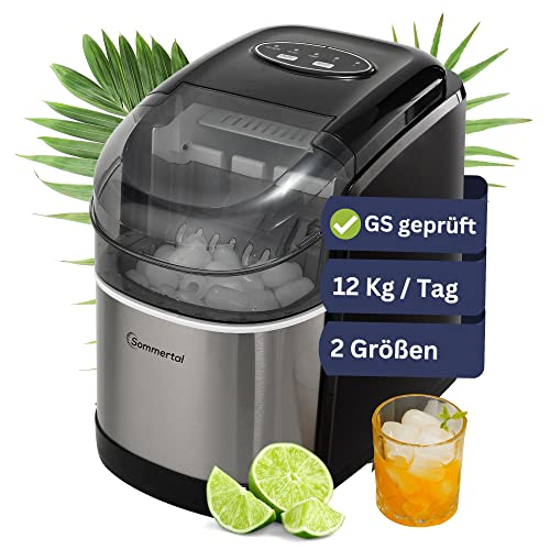 Sommertal Eiswürfelmaschine EM12C - Ice Maker mit schneller Eisherstellung ab 6 Minuten12kg pro Tag, 2 Würfelgrößen, mit Schaufel & Entnahmekorb - Eiswürfelbereiter, Eiswürfelmaschine klein