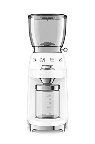 Die Smeg Kaffeemühle bietet präzise Dosierungsmöglichkeiten für Espresso, ein attraktives und robustes Design sowie eine schöne weiße Farbe, die nicht anfällig für Verschmutzung ist. Diese Merkmale machen sie zu einem praktischen und stilvollen Gerät für jeden Kaffeeliebhaber.