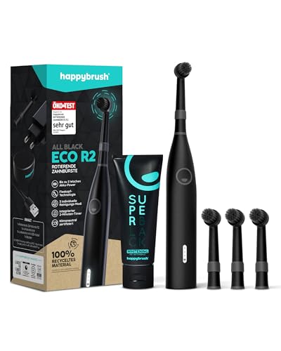 "Die happybrush ECO R2 all black überzeugt als leistungsstarke elektrische Zahnbürste. Die Reinigungsleistung gefällt uns, und der Bürstenkopf passt sich gut an die Zahnreihen an. Mit 3 Wochen Laufzeit geht die Akkulaufzeit absolut in Ordnung. Das moderne Design und die hochwertige Verarbeitung gefallen uns ebenfalls. Einzig die ungenaue Akkuanzeige, die lange Ladezeit und der unserem Empfinden nach etwas zu harte Bürstenkopf schmälern das Gesamtergebnis leicht. Von uns gibt es trotzdem eine Kaufempfehlung."