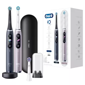Die Oral-B iO Series 9 Black Onyx/Rose Quartz Elektrische Zahnbürste mit 2. Handstück bietet eine Vielzahl von Vorteilen für die Zahnhygiene. Durch ihren leisen Betrieb ermöglicht sie eine angenehme Nutzung, während das schicke Design und die verbesserte Mechanik ein modernes und effektives Putzerlebnis bieten. Die einfache Handhabung sowie die gute Reinigungswirkung sorgen dafür, dass das Zähneputzen zu einer mühelosen Routine wird. Zusätzlich ist die Zahnbürste auch mit einer praktischen App-Anbindung ausgestattet.