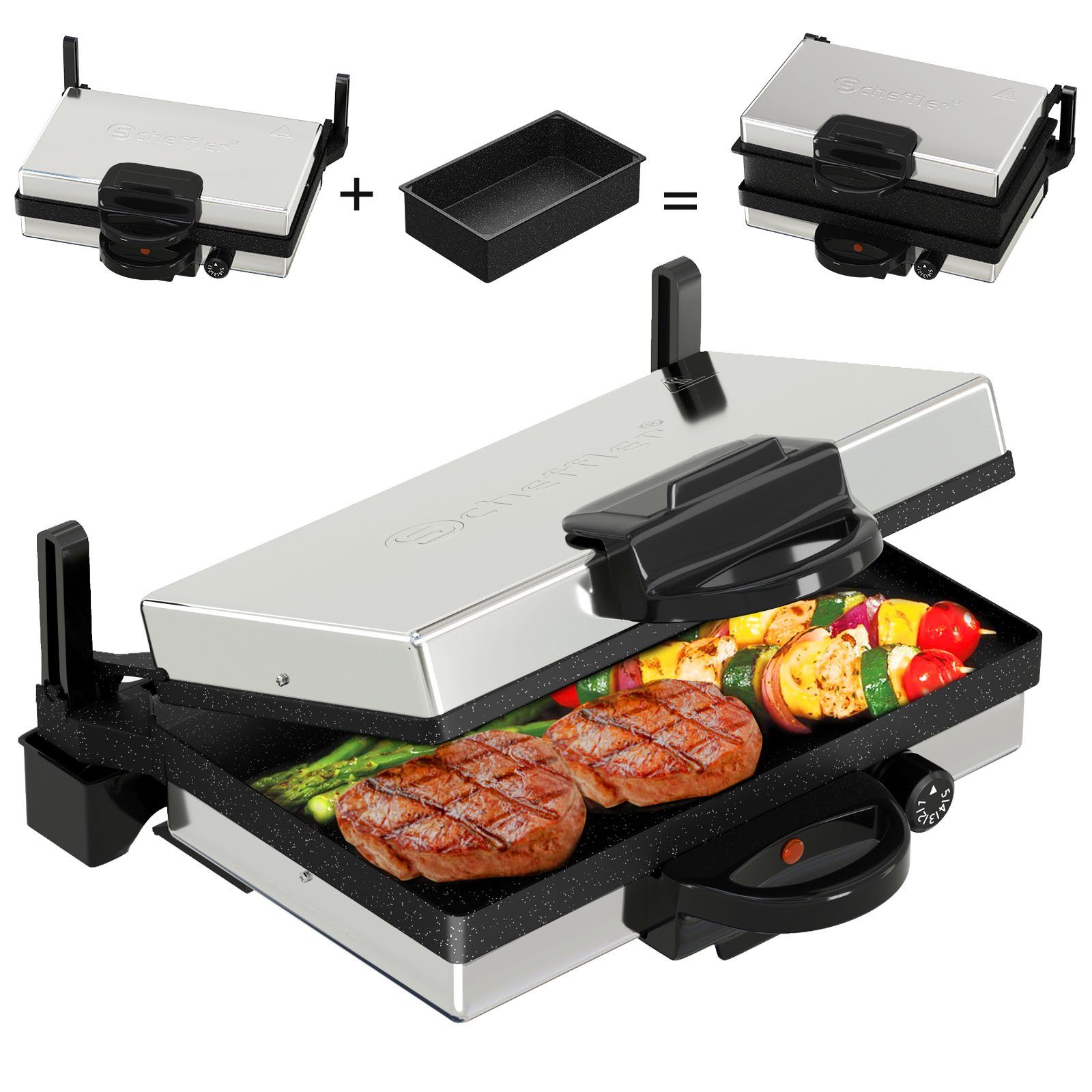 | Besonderheiten | - | App-Steuerung, integriertes digitales Thermometer, 7 Kochfunktionen, wetterfest, Holzfeuer-Technologie | mit Deckel, mit Boost-Zone, mit Thermostat | Stufenlos verstellbarer Temperaturregler für präzise Temperatureinstellung. | Grillplatte und Saftauffangbehälter spülmaschinengeeignet. | 5 in 1 Funktion: Anbraten, Räuchern, Dämpfen, Warmhalten und Grillen von tiefgekühltem Grillgut | mit Fettauffangschale, mit Deckel, mit Grillplatte, mit Thermostat, mit Windschutz, mit integriertem Heizelement | mit Fettauffangschale, mit Deckel | mit Fettauffangschale, mit Grillplatte, mit Windschutz, mit Deckel, mit Kontrollleuchte, mit Thermometer | - | mit Kontrollleuchte, mit Windschutz | - | Verwandelt den Grill in einen elektrischen Smoker, um Rippchen und anderes langsam zu garen. | 2 leistungsstarke Heizelemente (separat regulierbar), SIMPLE CLEAN™ Reinigungssystem, emaillierter Grillrost für einzigartiges Branding, abklappbare Seitenablagen, viel Stauraum im Unterschrank, formstabile Garhaube mit integriertem Thermometer. | - | - | mit Grillplatte, mit Kontrollleuchte, mit Thermostat, mit Warmhalterost, mit Windschutz, 2 Seitentische, Untertisch | - | 2 unabhängige Grillflächen, Thermostate mit 5 Einstellungen, wenig Rauch und Geruchsbildung | Kompakte Größe zum Verstauen: 90 cm breit mit heruntergeklapptem Seitentisch | mit Grillrost, mit Fettauffangschale |