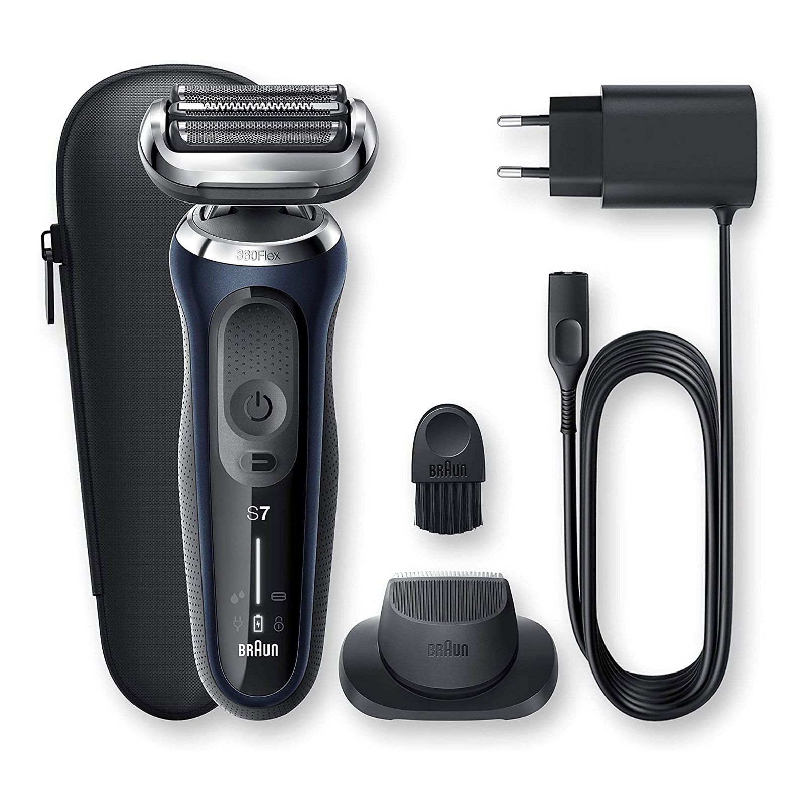 "Mit einer ordentlichen Akkulaufzeit, einer relativ gründlichen Rasur und der Fähigkeit, sowohl trocken als auch nass zu arbeiten, ist der Braun Series 7 ein großartiger Allround-Rasierer, der sich automatisch an die Haarlänge anpasst. ..." - übersetzt durch die Testsieger.de-Redaktion