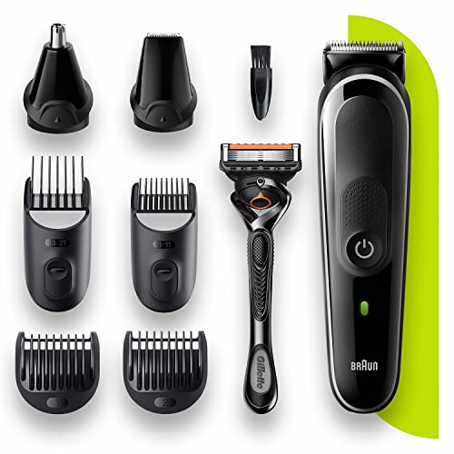 | Lieferumfang | All-in-one Trimmer, Kammaufsatz 3 bis 11 mm, Kammaufsatz 13 bis 21 mm, Feste Kammaufsätze mit 1 mm und 2 mm, Ohr/Nase-Trimmerkopf, Prezisions-Trimmerkopf, Gillette Fusion5 ProGlide Rasierer, 2 Klingen, Reinigungsbürste, SmartPlug |