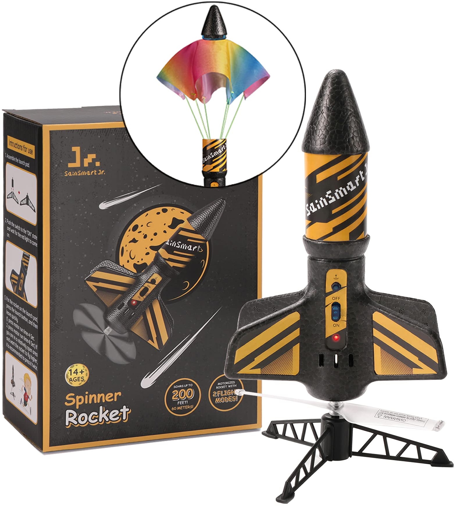 | Name | SainSmart Jr. Rakete Spielzeug – Motorisierte Rakete mit Fallschirm, Start bis zu 61 Meter, Outdoor-Spielzeug für Kinder im Alter von 8–12 Jahren, Schwarz |