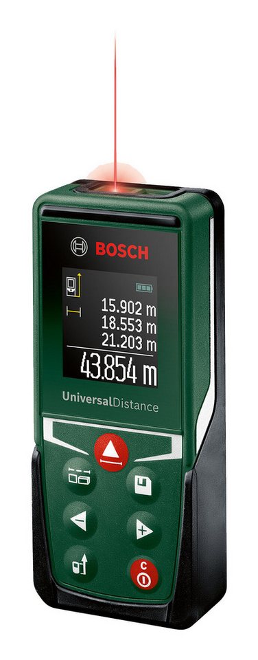 • Der Bosch UniversalDistance 50 ist ein digitaler Laser-Entfernungsmesser, der präzise Messungen von Entfernungen bis zu 50 m ermöglicht