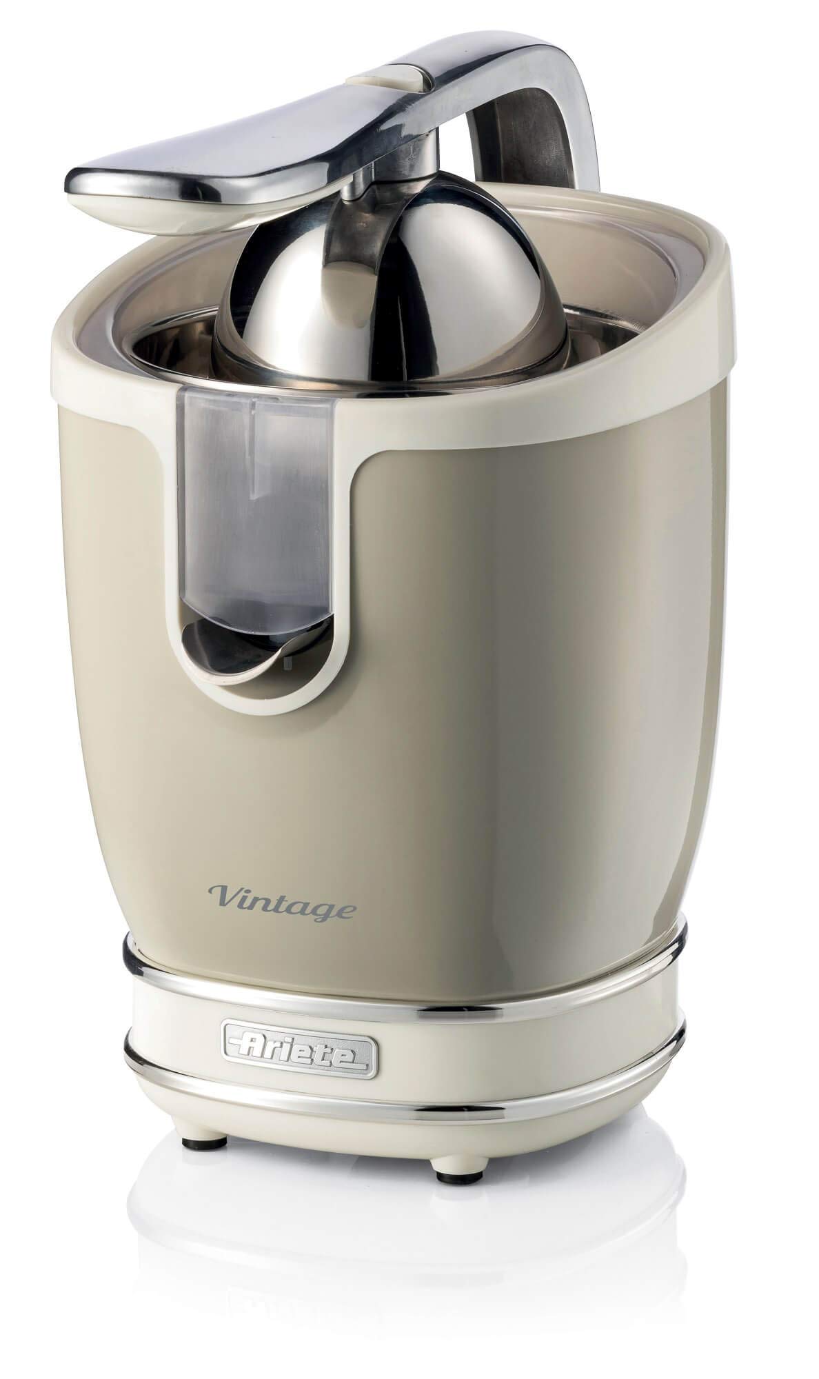 Die Ariete 413 Vintage Elektrische Zitruspresse mit Hebel bietet Ihnen die Möglichkeit, frischen Saft schnell und einfach zuzubereiten. Dank der leisen Betriebsweise und der einfachen Reinigung ist sie ideal für den täglichen Gebrauch in Ihrer Küche. Der nostalgische Vintage-Stil verleiht Ihrer Kücheneinrichtung eine besondere Note.