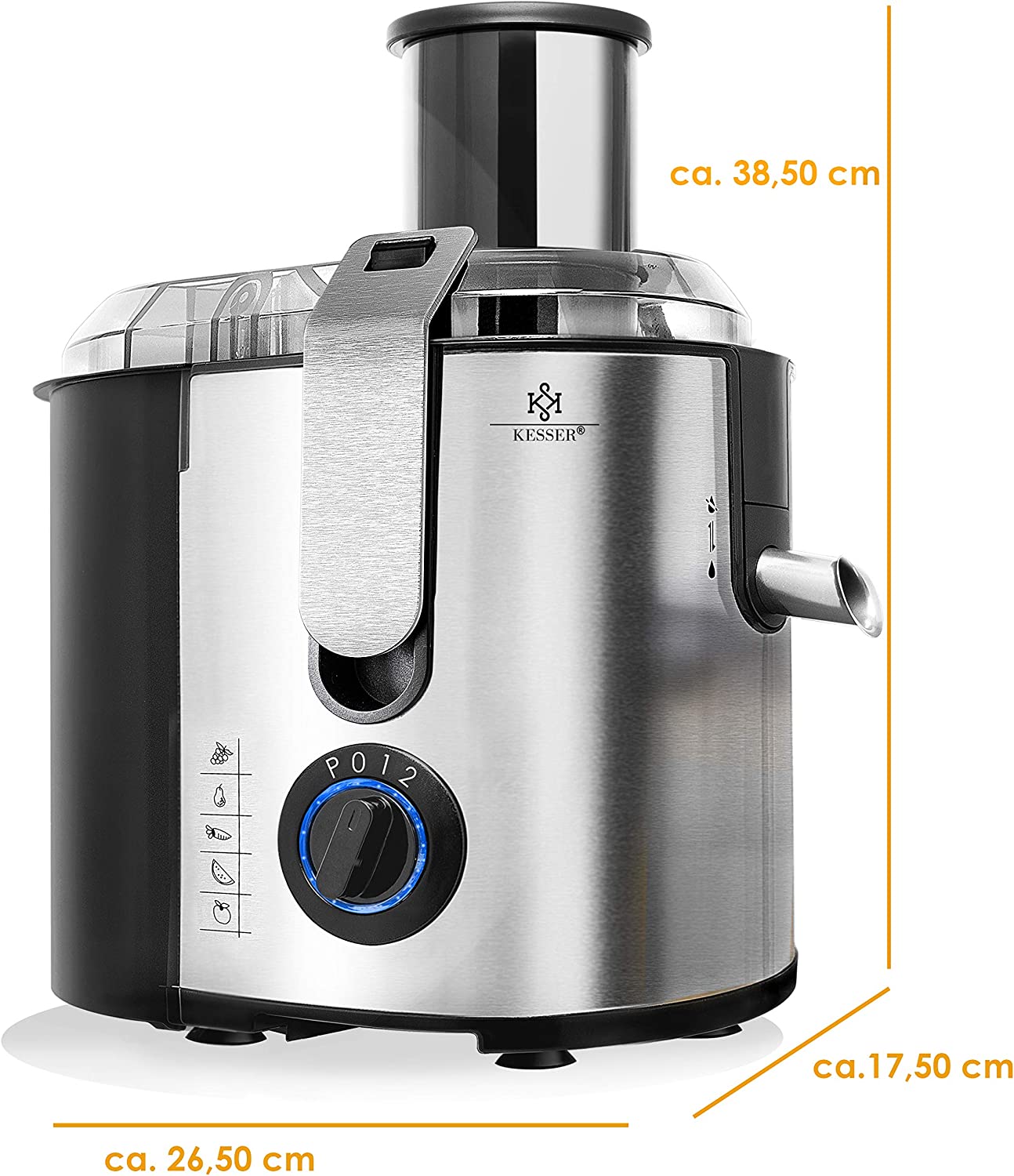 Der KESSER Entsafter für Obst und Gemüse bietet eine hervorragende Leistung beim Entsaften und liefert qualitativ hochwertigen Saft. Durch die einfache Handhabung ist es ein Leichtes, köstlichen Saft zuzubereiten. Zudem bleiben die Rückstände im Behälter trocken, was die Reinigung erleichtert.