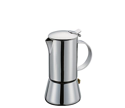 Dieses Produkt bietet die Möglichkeit, aromatischen Moka Kaffee auf einfache und schnelle Weise zuzubereiten. Hergestellt aus robustem Edelstahl, überzeugt es durch seine Langlebigkeit und Haltbarkeit. Der sichere Griff bleibt während des Kochens kühl, was die Handhabung sicherer macht. Zudem entfaltet der Kaffee ein intensives Aroma ohne Metallnachgeschmack, was das Genusserlebnis verbessert.