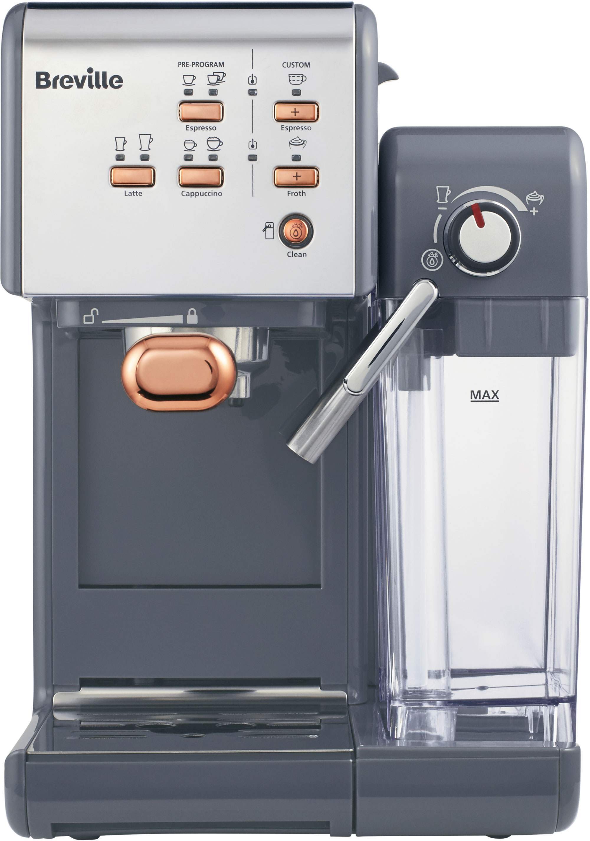 Ein herausragendes Merkmal der Breville PrimaLatte II ist der integrierte automatische Milchschäumer, der über einen verstellbaren Regler verfügt. Dies ermöglicht den Nutzern, den Milchschaum nach ihren Vorlieben anzupassen. Obwohl die Maschine keine Smart-Connectivity-Funktionen bietet, kompensiert sie dies durch ihre Benutzerfreundlichkeit und die Möglichkeit, verschiedene Kaffeevariationen zu kreieren.