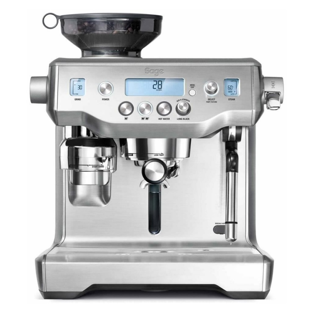 Die Sage The Oracle SES980 präsentiert sich in einem eleganten Brushed Steel Design, das sowohl in modernen Küchen als auch in klassischen Umgebungen gut zur Geltung kommt. Mit einem Gewicht von 20,5 kg ist die Maschine stabil und vermittelt einen hochwertigen Eindruck. Ihre Abmessungen von 41 x 37 x 45 cm erfordern jedoch einen entsprechenden Platzbedarf, der bei der Planung berücksichtigt werden sollte. Kunden berichten von einer robusten Verarbeitung, die den Einsatz im Alltag gut verträgt.