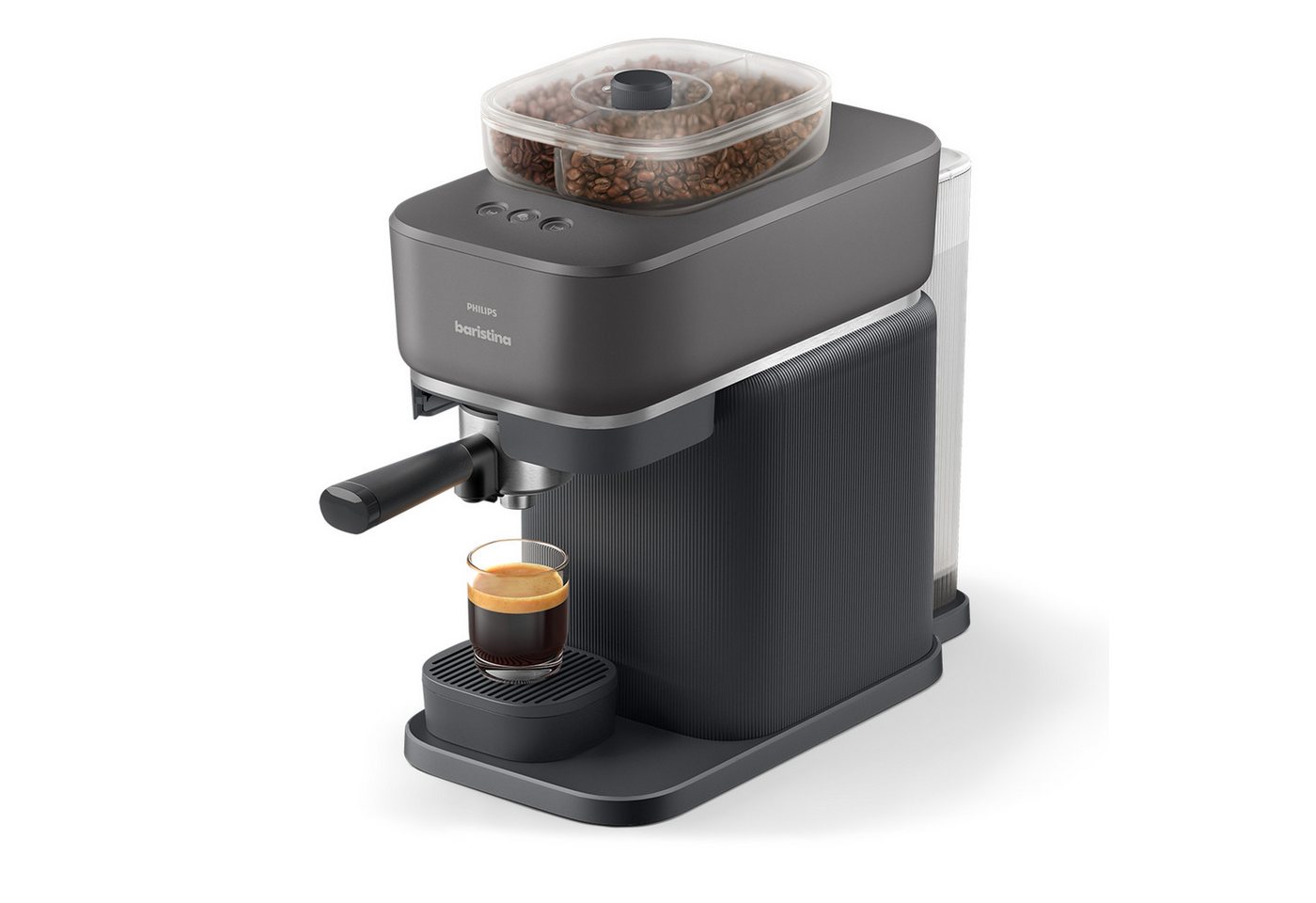 90° Edelstahl-Aufschäumdüse und herausnehmbarer Milchtank für individuelle Milchschaum-Produktion.