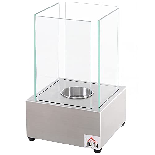 HOMCOM Ethanol-Kamin Bio-Ethanol-Brenner 0,4L 2 Stdn. Brenndauer kein Rauch Edelstahl 20 x 20 x 33 cm