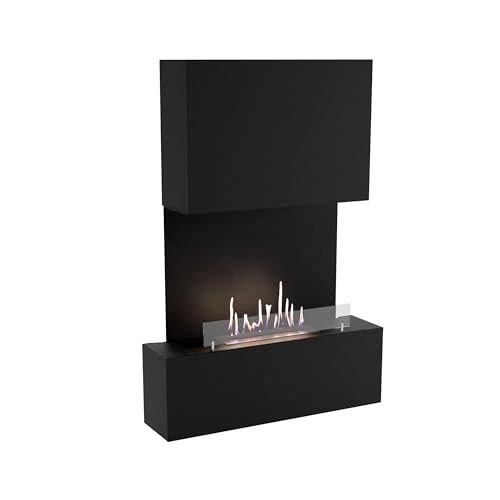 GLOW FIRE Ethanol Kamin LEVANGER (Wandkamin) - 3 h Brenndauer, über 2kW Heizleistung, Holz-Fassade, 104 x 150 x 26 cm - Schwarz