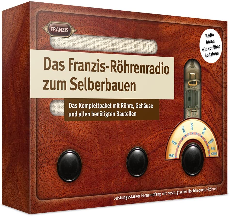 | Beschreibung | Das Franzis-Röhrenradio zum Selberbauen Das Komplettpaket mit Röhre, Gehäuse und allen benötigten Beuteilen. Abmessungen des zusammengebauten Retro-Radios (B x H x T): 190 x 130 x 45 mm Stromversorgung: 6 Volt + 9 Volt Benötigt werden: Lötkolben (für den Aufbau), Lötzinn, vier-Mignon-Batterien 1,5 Volt (AA) und eine 9-Volt-Blockbatterie für bis zu zehn Stunden Fernempfang Altersempfehlung: ab 14 Jahre Achtung: Nicht für Kinder unter 36 Monaten geeignet. Erstickungsgefahr wegen verschluckbarer Kleinteile. Achtung: Für Kinder unter 14 Jahre nicht geeignet. |