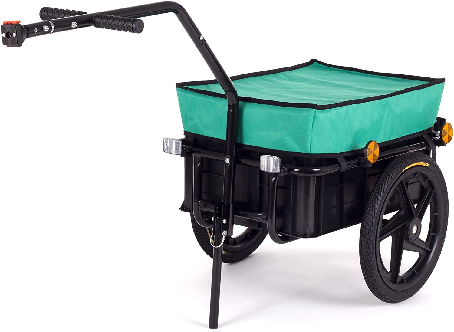 | Name | SAMAX Transportanhänger Fahrradanhänger Lastenanhänger Fahrrad Anhänger Handwagen mit Kunststoffwanne für 60 Kg / 70 Liter in Grün |