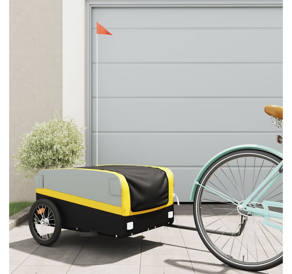 vidaXL Fahrradlastenanhänger Fahrradanhänger Schwarz und Gelb 45 kg Eisen mit Deichsel und Sicherheitsflagge