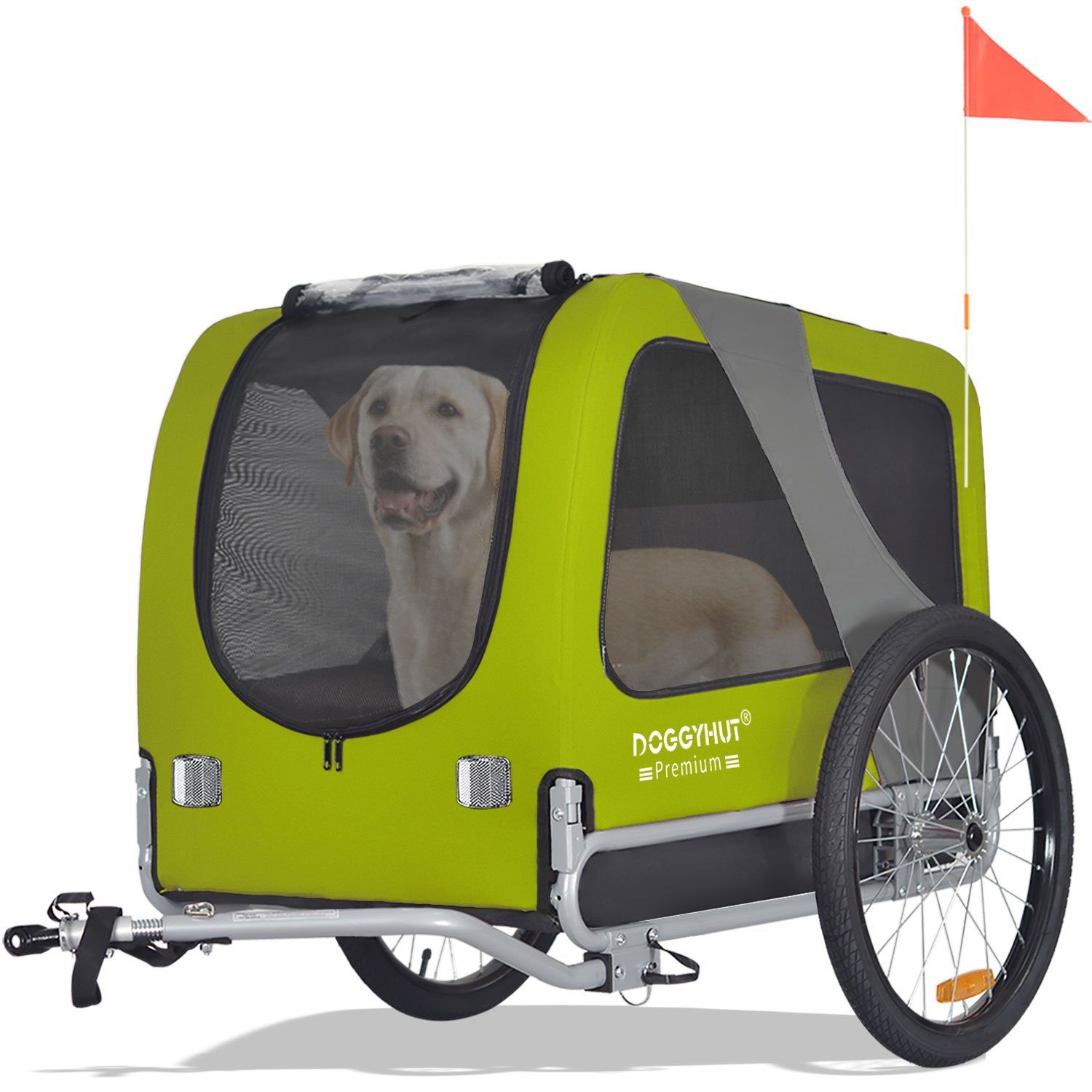 TIGGO DOGGYHUT® Fahrradhundeanhänger 15 - 30kgHundefahrradanhänger aus Stahlrahmen, wasserdicht, mit Luftbereifung, Reflektoren, StVZO zugelassen