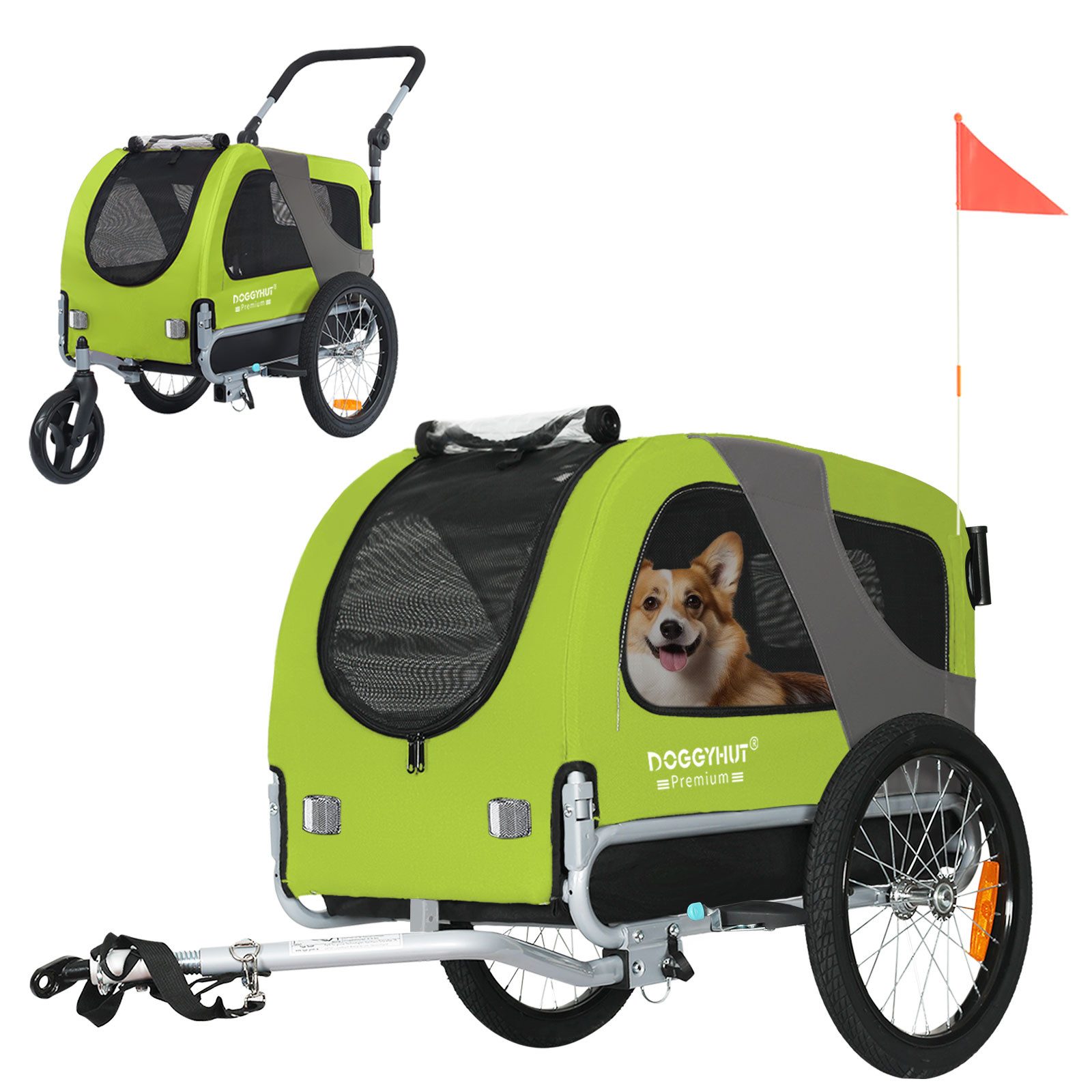 • Der Anhänger lässt sich einfach in einen Jogger umwandeln und verfügt über eine verstellbare Sicherheitsleine für zusätzliche Sicherheit