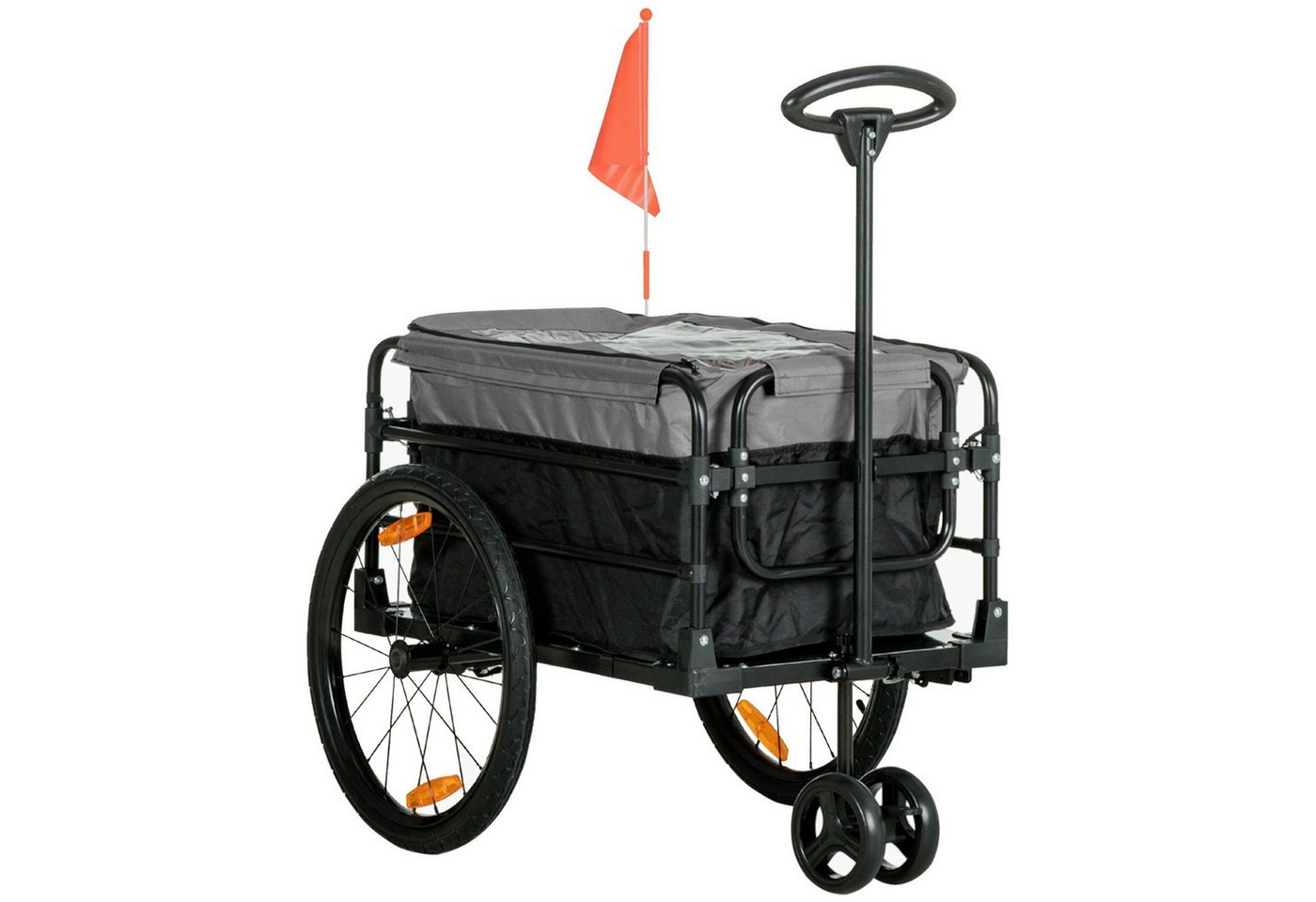 HOMCOM Fahrradlastenanhänger Lastenanhänger 40 kg Stahl Oxford-Stoff Schwarz+Grau130L x 64B x 64H cm