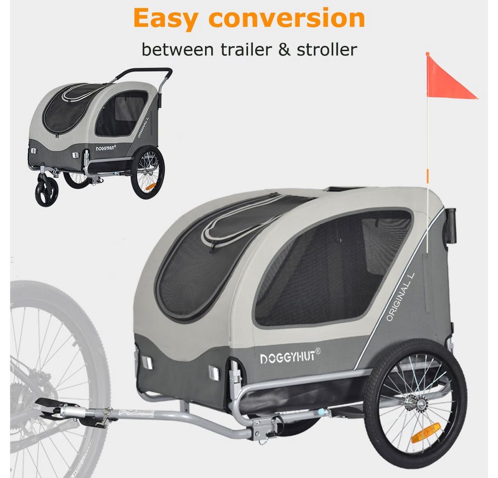 TIGGO DOGGYHUT Fahrradanhänger & Hundebuggy bis 35kgJoggerfunktion, Large, Schwarz