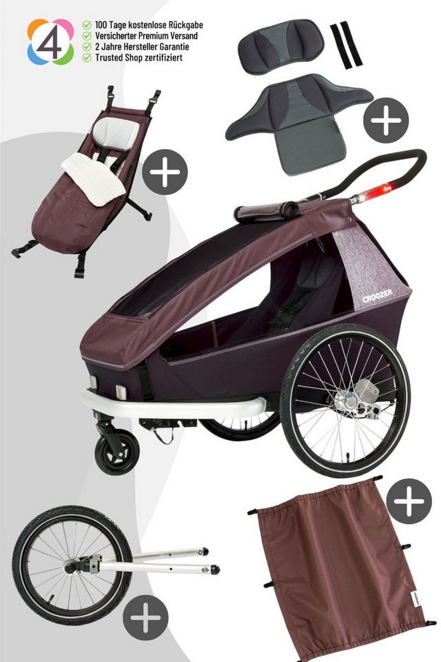 Croozer Fahrradkinderanhänger Kid Vaaya 2 Kid All-Season Bundle GeschwisterBlossom Red, Sensor-Licht, Croozer AirPad® Federung, 5-Punkt-Sicherheitsgurte