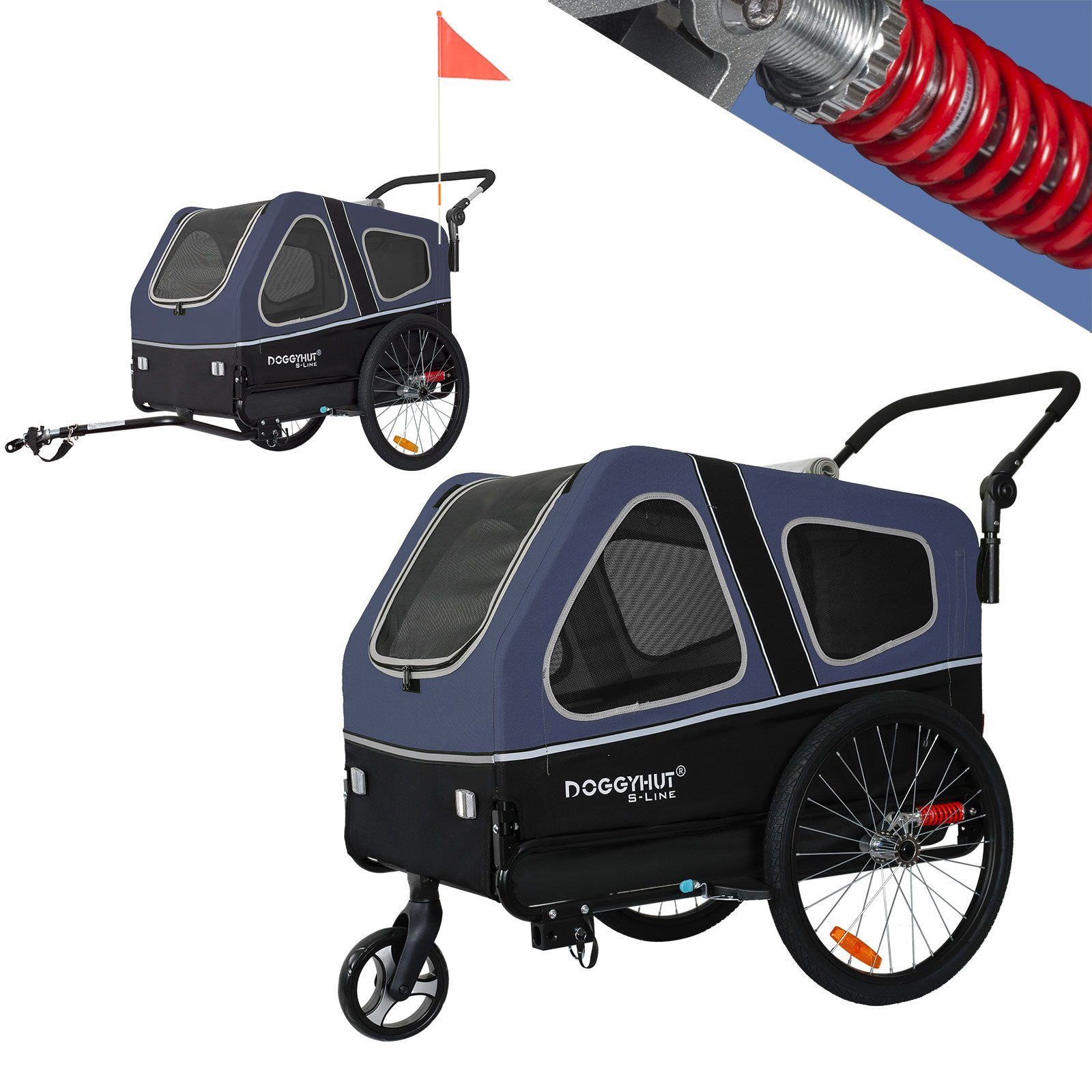 TIGGO Fahrradhundeanhänger Doggyhut S-Line XXL2 in 1 Fahrradanhänger & Hundebuggy mit extra breitem Radstand und verstärktem Boden