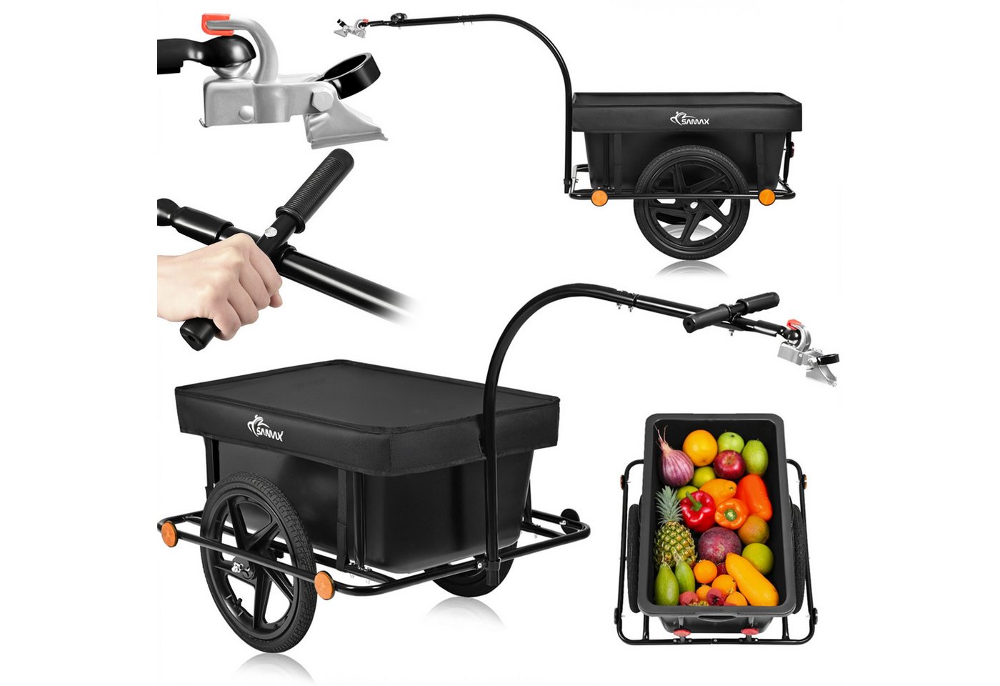 SAMAX Fahrradlastenanhänger Lastenanhänger 90 Liter 80 Kg Kupplung Schutzplane