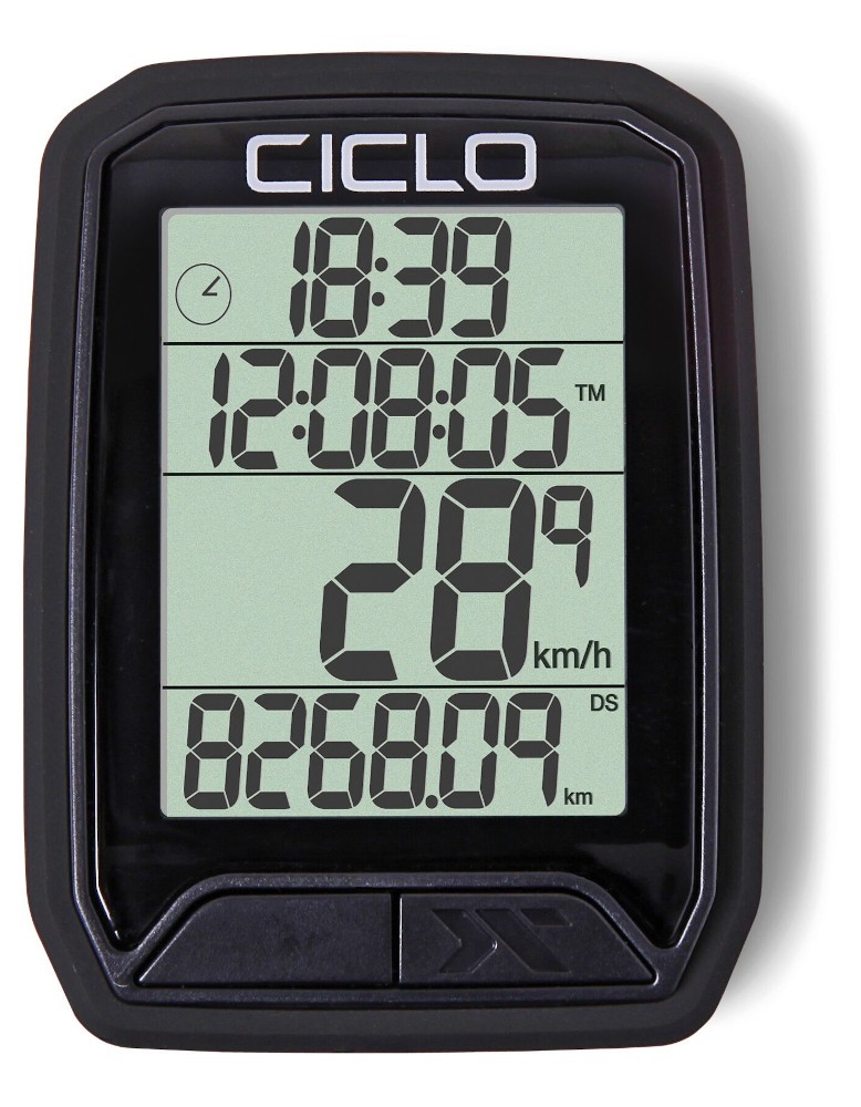 | Funktionen | aktueller Kilokalorienverbrauch, gesamt Kilokalorienverbrauch, Uhrzeit 12/24h, aktuelle Fahrzeit, Gesamtfahrtzeit, aktuelle Geschwindigkeit, Durchschnittsgeschwindigkeit, max. Geschwindigkeit, Geschwindigkeitsvergleiche, absolvierte Strecke, gesamt Strecke |
