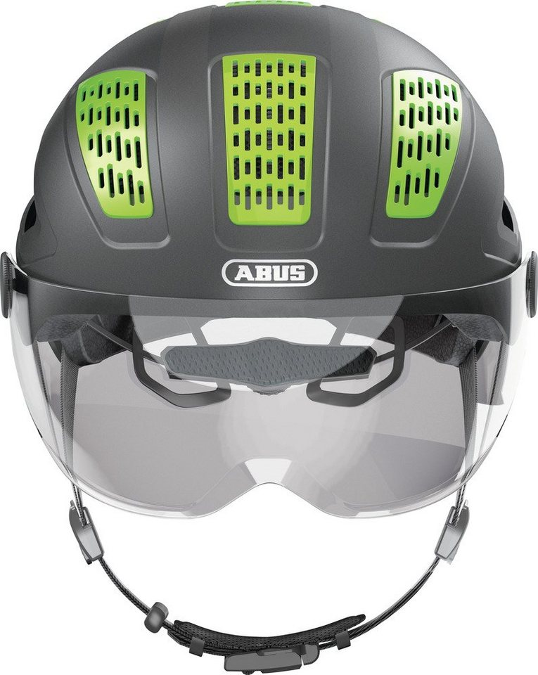 ABUS Hyban 2. 0 ACE Mit dem ABUS Hyban 2. 0 ACE ist jede Fahrradfahrt frei von zügigem Fahrtwind und nervigen Insekten. Ausgestattet mit einem großen Visier und einem Topgrid ist dieser Helm der ideale Begleiter für den täglichen Großstadtverkehr. Die ABS-Hartschale federt Stürze zuverlässig ab. Um in der Dunkelheit eine gute Sichtbarkeit zu gewährleisten, wurde der Radhelm mit einem leuchtstarken Rücklicht versehen. Zusätzlich sorgen Reflektoren für erweiterte Sichtbarkeit. Ein Vollring mit einem präzisen Verstellsystem sorgt für die perfekte Passform an Kopf und Kinn. Der ABUS Hyban 2. 0 ACE - für perfekte Sicht und freie Fahrt. Weitere Produkt-Vorteile: • Ponytail-kompatibel: Für Langhaarfrisuren wie z. B. Zöpfe geeignet• Voll umschließender Kunststoffring mit Verstellsystem• Fidlock-Magnetgurtschloss - magnetischer Helmverschluss• Mit Fliegennetz