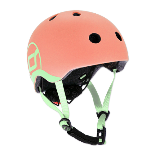 Der Scoot and Ride - Helmet XS in Peach bietet ein schönes Design und Farbe sowie wichtige Sicherheitsmerkmale wie ein blinkendes rotes Licht. Er ist einfach einzustellen und sitzt gut auf dem Kopf, was für einen sicheren Schutz sorgt.