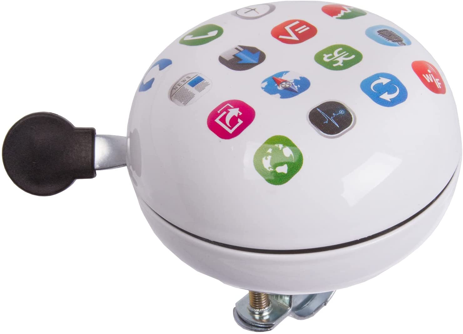 | Beschreibung | M-wave Glocke Apps. - Farbe: weiß (mit verschiedenen Anwendungen Symbole) - Durchmesser: 80 mm - Material: Stahl - Ding-Dong Glocke |