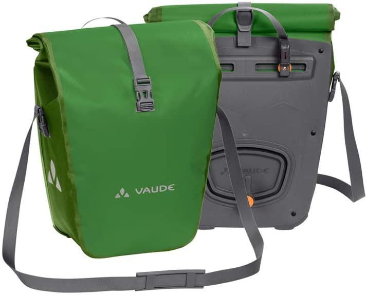 Wasserdichte Hinterradtaschen, 48l. Farbe: Grün / Größe: 48l - Auf in die große, weite Welt! Die wasserdichten Hinterradtaschen Aqua Back von Vaude werden aus robustem, PVC-freiem Planenmaterial klimaneutral am deutschen Vaude-Standort in der Nähe des Bodensees hergestellt und würde gerne mit Ihnen auf große Reisen gehen. Sie lassen sich durch den Wickelverschluss auf individuelle Größen bringen und absolut dicht verschließen. Für Übersichtlichkeit sorgt eine einfache Innentasche. Die Radtaschen werden mit dem QMR 2. 0-System und stabiler Rückenplatte rechts und links am hinteren Gepäckträger befestigt, sind über einfach bedienbare Handrädchen justierbar und lassen sich schnell und einfach abnehmen. Mit einem Fahrradschloss können sie direkt am QMR-Haken verriegelt werden. Reflexelemente sorgen für eine gute Sichtbarkeit im Straßenverkehr. Lieferumfang: zwei Taschen (Paar). Die Aqua Back von Vaude kann durch diese praktischen Zubehör-Taschen ergänzt werden: Toolbag Back, Sortyour Back, Addita Bag. - Hinterradtasche zum Radfahren - Wasserdicht verschweißt - PVC-freies Planenmaterial - Geräumiges Hauptfach - Wasserdichter Wickelverschluss - Rollverschluss nach oben und unten schließbar - Abnehmbarer Schultergurt - Schulterträger auch als Spanngurt nutzbar - Reflexlogo - Leicht einstellbares QMR 2. 0 Befestigungssystem - QMR abschließbar - Innentasche - Klimaneutral in Deutschland hergestellt - Max. Ladegewicht: 25 kg - Abmessungen: 37 x 33 x 19 cm - Volumen: 48 l / Paar - Gewicht: 1. 940 g / Paar - Hauptmaterial: 100% Polyester / 1000d Embossed Thermoplastic Polyurethan beschichtet - Kontrastmaterial: 100% Polyamid / 840d Thermoplastic Polyurethan beschichtet - Materialeigenschaft: wasserdicht - Material: 1000 D Embossed Thermoplastic Polyurethane coated, 840 D Thermoplastic Polyurethane coated