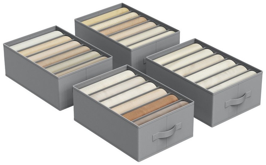 | Name | SONGMICS Kleiderschrank-Organizer 4er Set, Aufbewahrungsbox 6 Fächer, Schubladen-Ordnungssystem, Ordnungsboxen faltbar, 42 x 30 x 17 cm, für Hosen, Kleidung, taubengrau RUSDE009G04 |