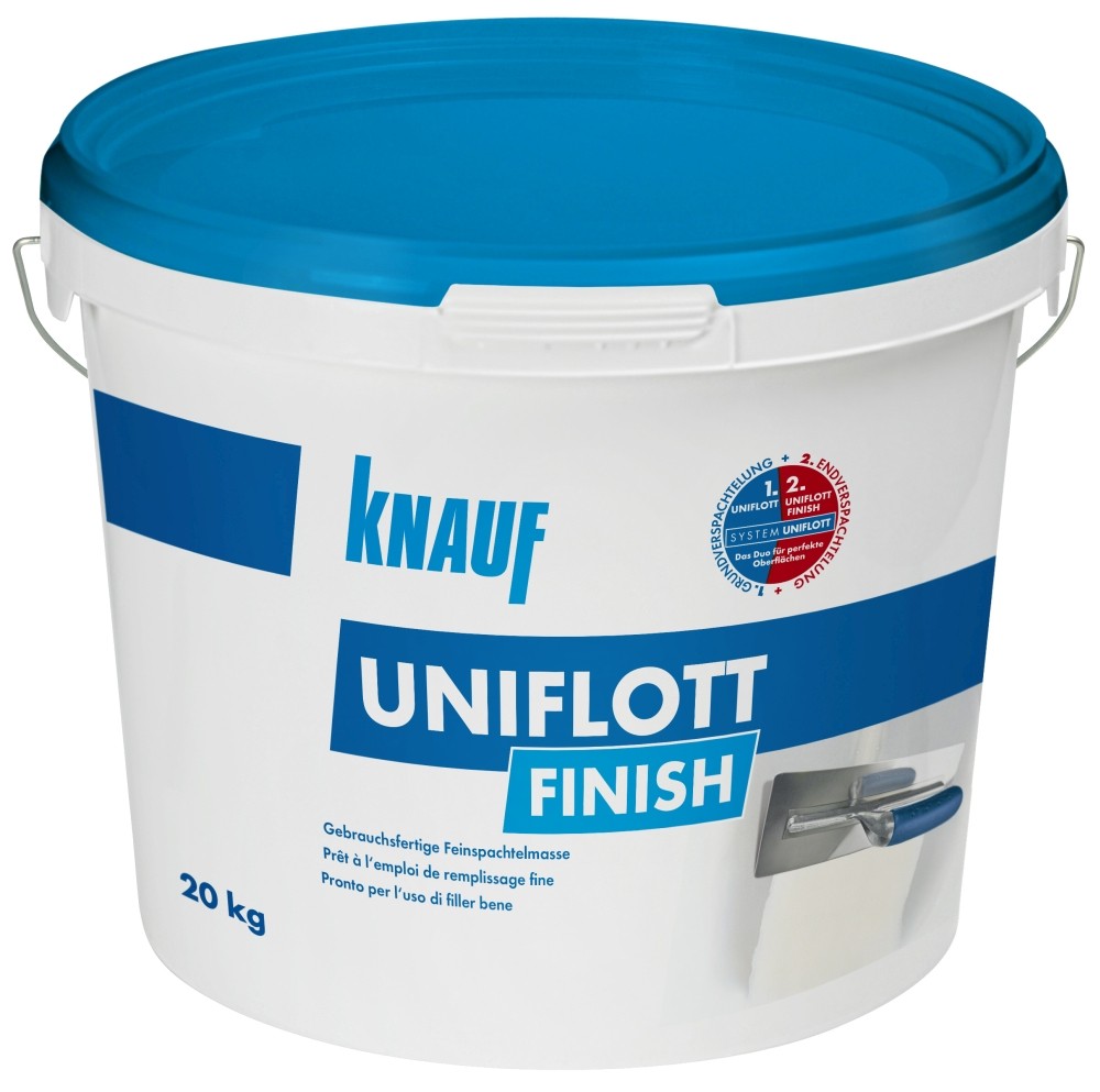 • Knauf Uniflott Finish ist eine gebrauchsfertige Spachtelmasse, die sich leicht verarbeiten lässt.