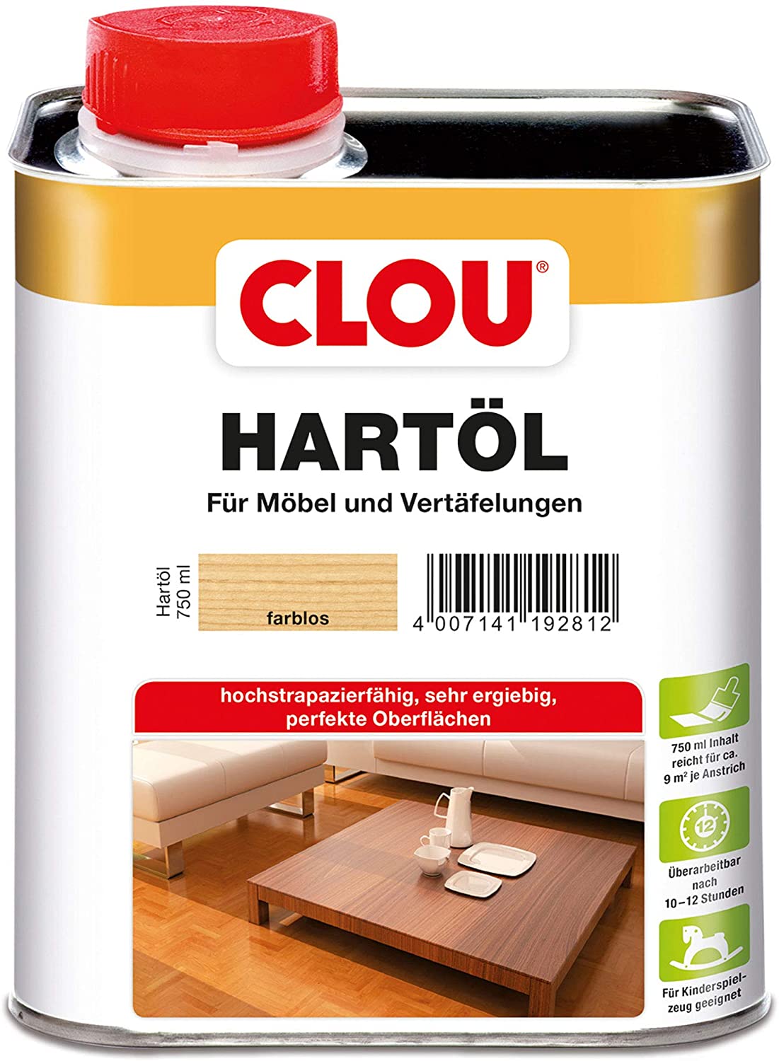 Clou Hartöl bietet eine schnelle Aufnahme vom Boden und trocknet schnell, ohne den Holzton zu verändern. Es ist preislich attraktiv und bietet somit ein gutes Preis-Leistungs-Verhältnis. Das Öl eignet sich für diverse Anwendungsbereiche wie beispielsweise Fußböden, Arbeitsplatten oder Möbelstücke.