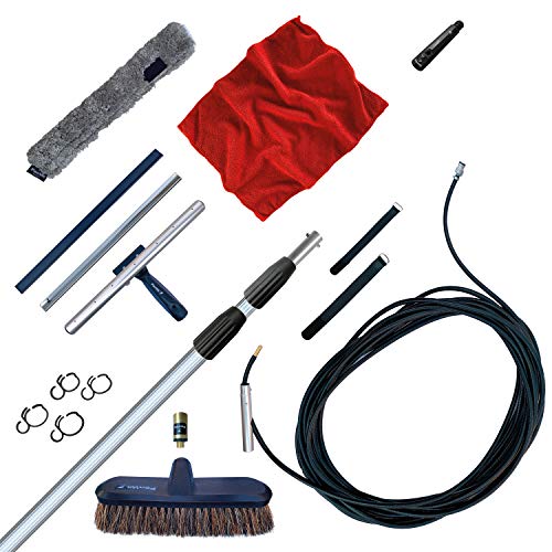 Ermöglicht die mühelose Reinigung schwer erreichbarer Glasflächen durch eine flexible Teleskopstange und 15m Wasserdurchlauf.
