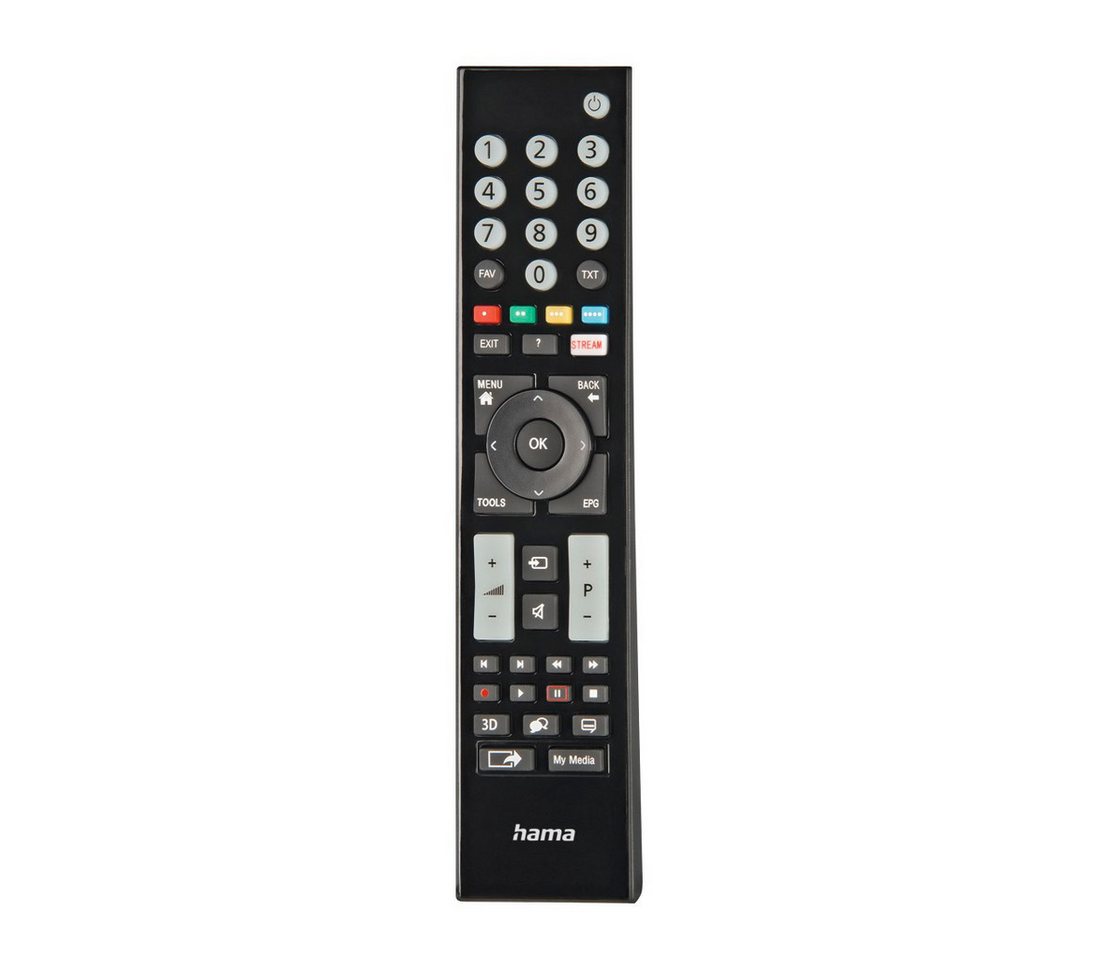 • Diese Universalfernbedienung von Hama ist speziell für Grundig TVs konzipiert und lernt die Funktionen der Originalfernbedienung automatisch